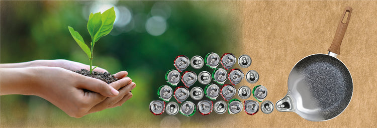 Nata dalla volontà di Domo di aiutare l'ambiente, Ecopan è la padella 100% Eco-Sostenibile. Grazie all'evoluzione tecnologica siamo ora in grado di produrre pentole in alluminio 100% riciclato e certificato utilizzando principalmente il recupero di lattine di alluminio